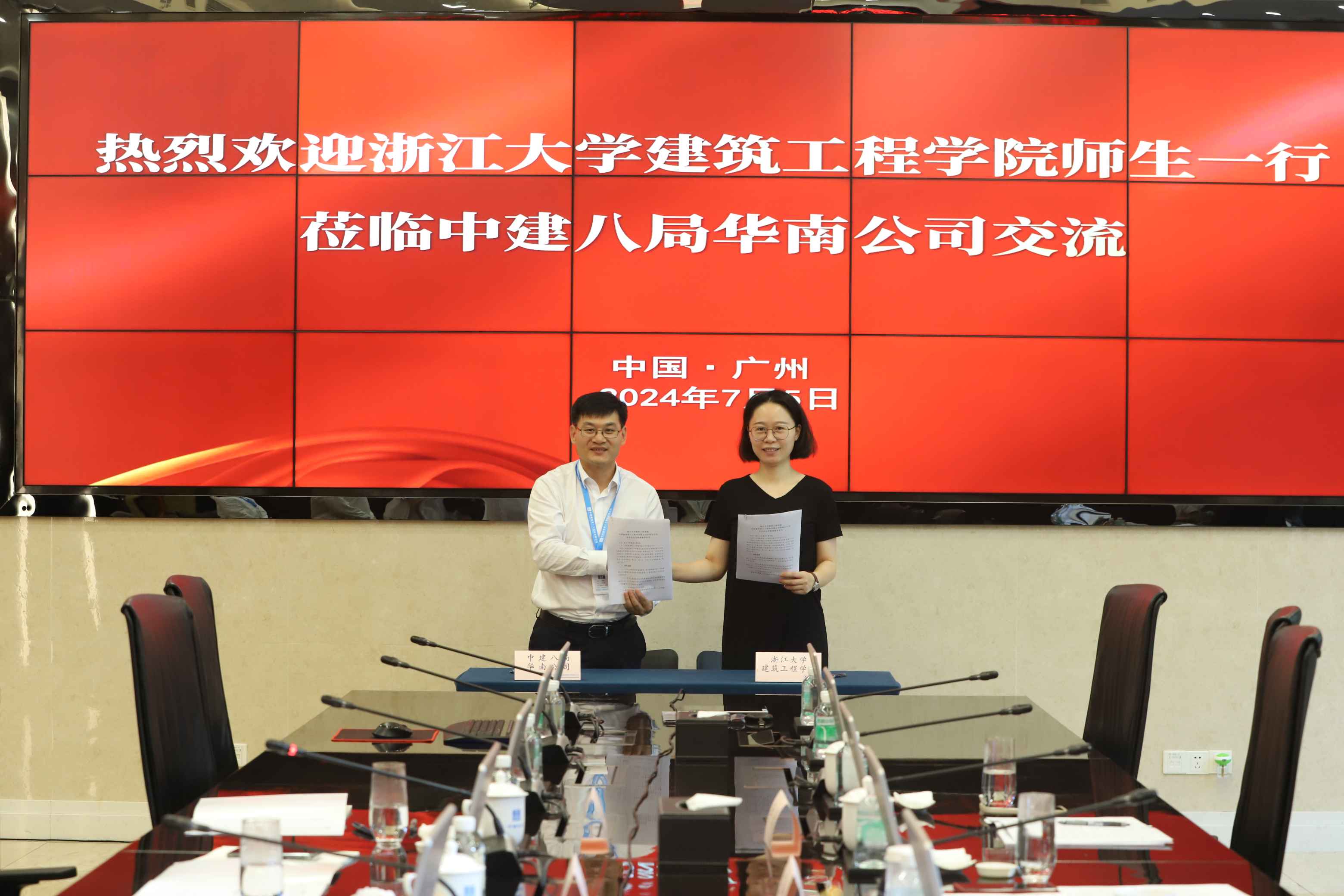 座談會上,中建八局華南公司黨委副書記、工會主席孫建文與學(xué)院王婷婷老師介紹雙方情況并圍繞行業(yè)現(xiàn)狀、人才培養(yǎng)、校企合作深入交流。隨后,雙方現(xiàn)場簽署《學(xué)生社會實踐基地協(xié)議》,并為學(xué)生社會實踐基地揭牌。本次協(xié)議的簽署,是雙方開展深度合作的良好開端,雙方將進(jìn)一步創(chuàng)新校企協(xié)同育人形式,搭建起產(chǎn)學(xué)研融合發(fā)展、人才交流培養(yǎng)、實習(xí)基地建設(shè)等方面合作的平臺,資源共享、優(yōu)勢互補,培養(yǎng)適應(yīng)行業(yè)發(fā)展、契合企業(yè)需求的高素質(zhì)人才,助推校企持續(xù)高質(zhì)量發(fā)展。