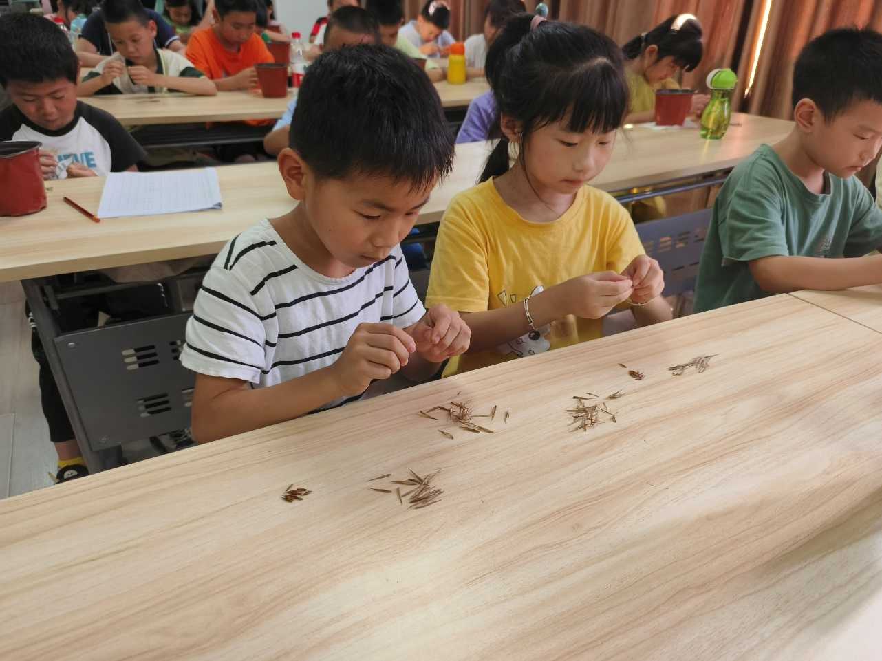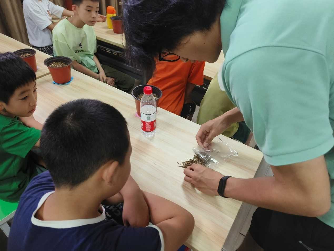 孩子們在實踐團成員的指導下剝開一粒粒竹種的外皮,小心翼翼地放入自己的小花盆中,并花盆上寫下給竹子起的名字,期待幾周之后種子萌發破土而出。“老師,它什么時候會長出來呀”“老師,我可以把我的竹子帶回家養嗎”,大山里的科學教室回響著孩子們充滿求知欲的提問。“識竹米,播竹種”活動引起了孩子們的熱烈反響。