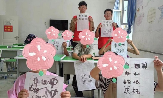 活動包括開場互動、書法及美術環節、體育運動。游戲環節包括五子棋、摸石過河、和彩龍吐珠等,活動開始時,志團隊成員通過為孩子們表演才藝,唱歌,跳舞等,與孩子們一起下五子棋,一起寫毛筆字,緩解了他們膽怯的情緒,拉近了彼此的距離,還讓他們體驗到了創作的樂趣,提升了自信心和表達能力。通過有獎問答的游戲環節,送給小朋友們各種各樣的禮物。最后,團隊成員給每位小朋友頒發精心準備的獎狀,以此表達溫暖的關愛和誠摯的祝福。