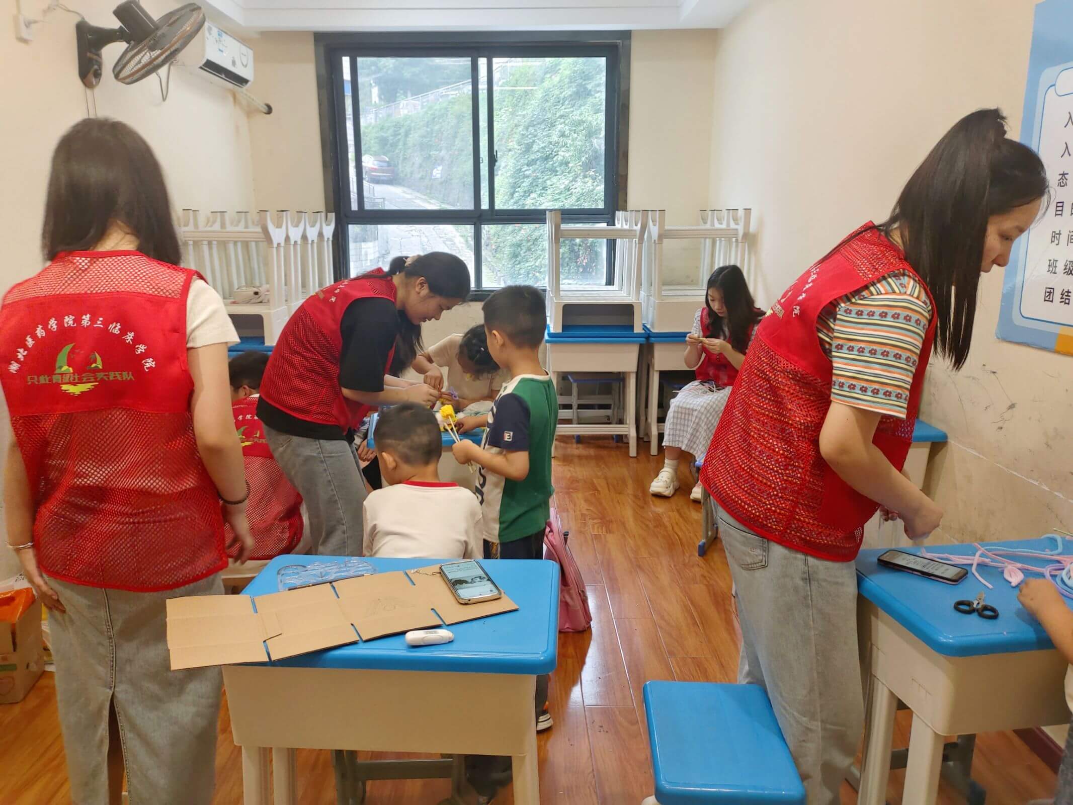 (湖北省十堰市蔡金成訊)為了響應(yīng)黨的二十大的號召,全面推進美麗中國建設(shè)、促進經(jīng)濟社會發(fā)展全面綠色轉(zhuǎn)型、全面貫徹習近平生態(tài)文明思想,2024年7月8日,湖北醫(yī)藥學院第三臨床學院只此青綠暑期社會實踐隊于十堰市三人行托管中心開展以“四色分類·因你而美"活動”。