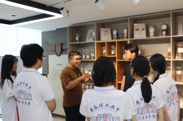 科技鏈接新交易、創新風里促增收 上市藥企珍寶島藥業投建運營的全國首家大宗中藥材現貨交易平臺——亳州中藥材商品交易中心處處展現著創新的活力,線上“神農谷”和線下“神農倉”實現了中藥材全產業鏈的覆蓋。隊員們在中藥材標本展廳里,深入了解了中藥材的藥用價值、生長習性、栽培技術以及病蟲防治等;通過智能化大屏,領略了中藥材直播電商平臺以及現貨倉單、現貨訂單平臺的搭建和產業鏈全景的構建;在倉儲物流平臺,學習中藥材從原材料到成品加工的詳細過程,了解中藥材的分類標準存放、現代化的管理系統、安全加工技術和質量標準等。最后,進行了“大學生社會實踐基地”掛牌儀式,我校成為在交易中心掛牌的第二所大學。