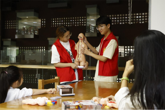 繽紛展色彩,共做“童心圓” 最后,在圖書館三樓,志愿者們通過人體模型為孩子們講解了人體結構,并引導他們開展了手工創作、繪畫、橡皮泥捏造人體器官等趣味活動。孩子們在輕松愉快的氛圍中,不僅學到了知識,還培養了動手能力和創造力。