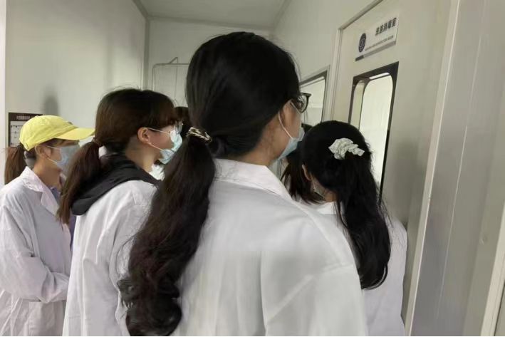 該公司主要以檢測服務為主,影響著養殖業的發展,關乎老百姓的“菜籃子”,餐桌上畜牧產品的安全,因此對實驗室的把控十分嚴格,在進入實驗室之前,成員們做足了充分準備,穿上鞋套,換好實驗服,全方位滅菌,方才開始進行實驗室的參觀。