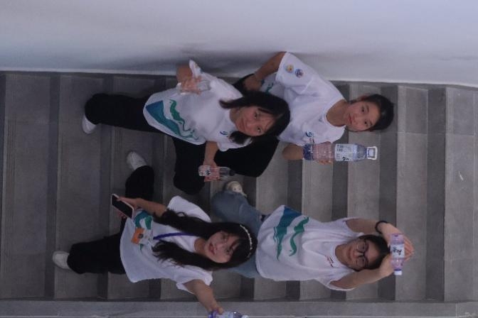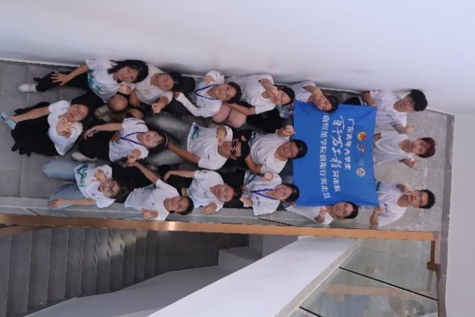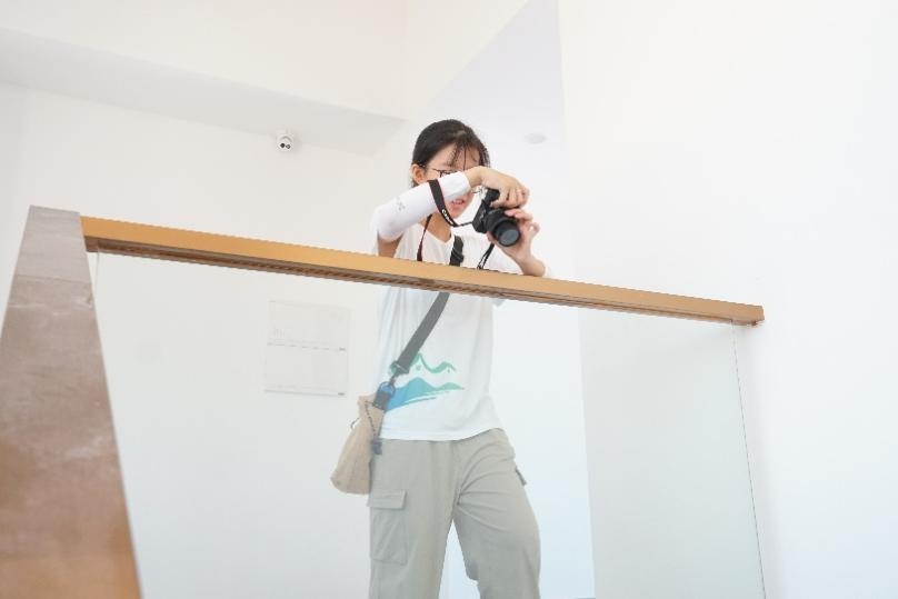 在宣傳組組長張翰月的帶領下,“朝陽行”突擊隊的隊員們精神飽滿,充滿期待地投入到拍攝工作中。宣傳組成員駱興乾和徐于婷發揮專業才能,精心策劃拍攝方案,指導隊員們在展廳四樓的樓梯間找到了最佳的拍攝角度。隊員們雖分布于各層臺階,卻形成了有序而生動的畫面,完美展現了團隊的凝聚力和青春活力。
