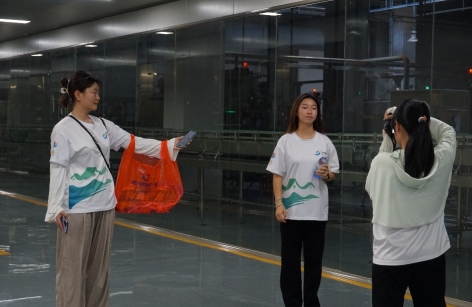 7月9日上午,嶺南師范學院商學院“朝陽行”突擊隊的宣傳組與營銷組成員在廣東畫景飲料有限公司的展廳和加工車間內,緊鑼密鼓地籌備著一場別開生面的直播預熱視頻拍攝活動。隊員們聚焦于次日將舉行的畫景“堿性水”直播,以鏡頭為筆,以光影為墨,勾勒出一幅幅“質”此湛藍的畫卷,同時展現嶺師學子通過直播助力鄉村振興、推動“藍色經濟”發展的蓬勃朝氣。