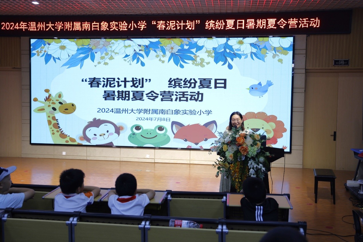 驕陽初升,開營儀式在南白象小學的報告廳中如期舉行,潘校長對“溫心”實踐隊開展教學活動表示了由衷的感謝,并希望同學們能在這次活動中有所思、有所學、有所成,展現出屬于他們的青春風采。在一片歡騰的鼓掌聲后,儀式圓滿結束,“溫心”實踐隊的實踐活動正式開始!