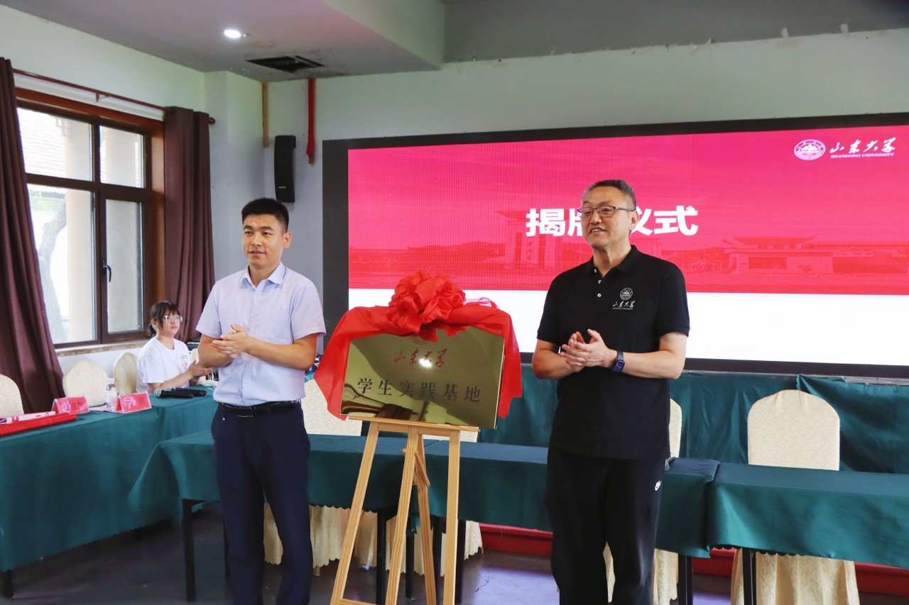 在開營儀式上,李首佐致歡迎辭,并介紹了本次銀杏果在南墅鎮東魯生態產業園開展活動的目的和意義。隨后,常偉東致辭,表達了對雙方建立合作的期待,并祝愿活動的順利舉行。緊接著,彭俊杰與常偉東簽署學生實踐基地合作協議,共同為山東大學學生實踐基地揭牌。