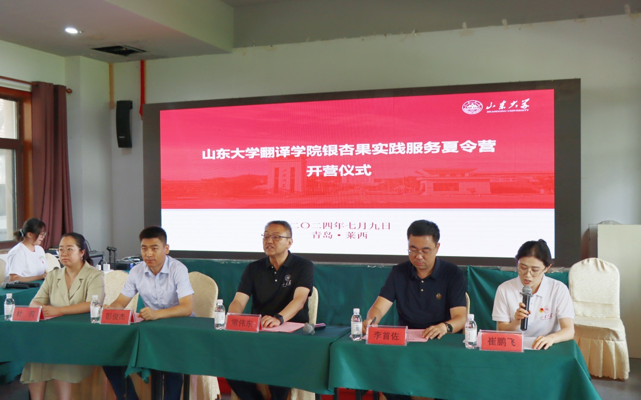9日上午,銀杏果實踐服務團在東魯農業生態公園舉行了銀杏果夏令營開營儀式。山東大學翻譯學院黨委副書記常偉東,萊西南墅鎮黨委副書記、鎮長李首佐、共青團萊西市委副書記彭俊杰,共青團萊西市委相關負責人以及翻譯學院全體輔導員共同出席了本次開營儀式,銀杏果實踐服務團學生志愿者以及全體學生營員共同參與了本次開營儀式。本次儀式由山東大學翻譯學院團委負責人崔鵬飛主持。