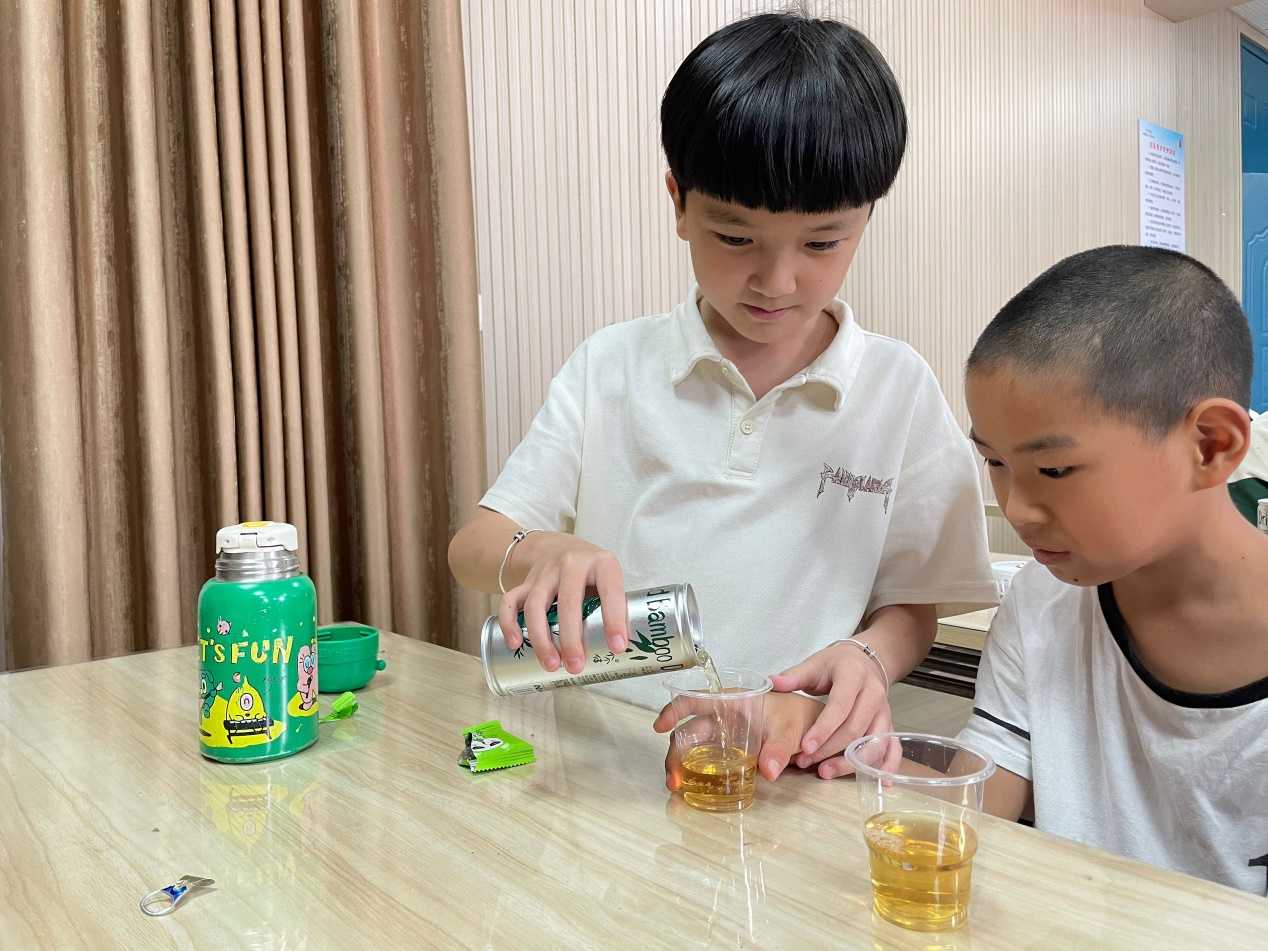 課堂上,孩子們的眼神中閃爍著好奇與興奮。他們聽著實踐團成員講述竹子在中華民族歷史長河中的故事,品嘗著用竹子制作而成的竹餅干,喝著竹子中提取成分而制成的竹飲料。那一刻,他們仿佛穿越了時空,與古老的竹文化進行了一場親密的對話。