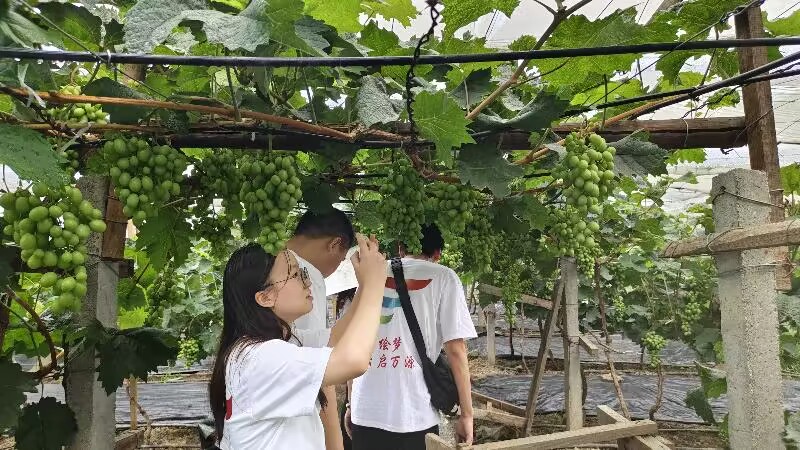 圖為志愿服務隊在杉林村村民帶領下了解當地葡萄園種植情況以及營收情況。 姜慧 攝
