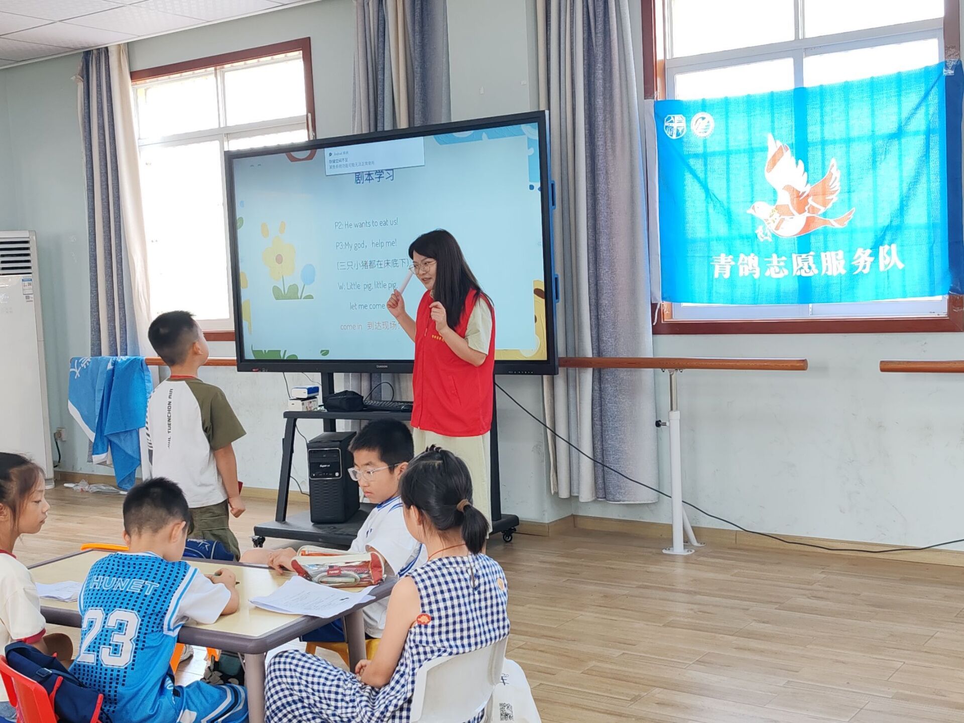 孩子們在英語課上繼續他們的戲劇之旅,學習《三只小豬》的經典故事。志愿者老師通過圖片、視頻等形式,讓孩子們在故事中感受英語單詞的含義,提升他們的英語口語表達能力。充滿歡快氛圍的課堂上,志愿者老師周燕老師用熱情暖心的話語鼓勵孩子們發言,將主場交給了孩子們。“我好喜歡周老師!”有小朋友面對采訪時興奮地說。