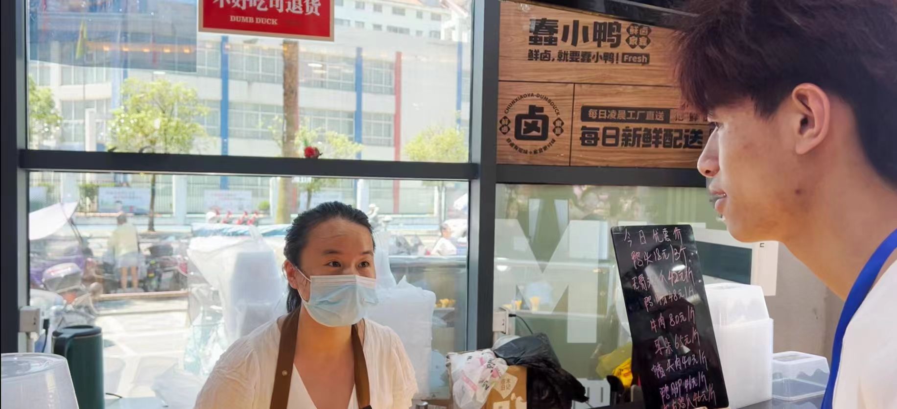 7月7日,團隊來到豐城凍米糕一家老牌作坊。手工傳承人自豪地說“豐城凍米糕的歷史悠久,代代相傳,祖孫三代便已掌握豐城凍米糕的制作手藝,經過傳承和改良,現如今已有芝麻、南瓜、香芋等多種新口味。在新時代的傳承中不斷推成出新,邁步向前。而與凍米糕齊名的另一樣美食“豐城板鴨”也成為了團隊調研的對象。經板鴨制作者講述:豐城板鴨采用當地生產的麻鴨為原材料,由于麻鴨在冬季生長慢,飼養成本高,宰殺腌制風味口感好,便多在秋冬兩季宰殺研制,并在豐城獨特的環境之下烘干從而得到成品板鴨。走訪非遺老店,探尋舌尖美食不僅是一次味覺的盛宴,更是一次文化和歷史的深度探索。不僅能夠享受到獨特的美食,還能夠對這些傳統手藝有更深的認識和尊重,從而促進非物質文化遺產的保護和傳承。