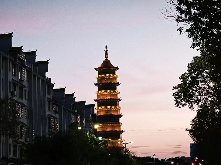 傍晚,團隊成員前往豐水湖,了解和合塔的威武雄姿。和合塔由我國著名古塔研究專家張馭寰大師主持設計,整塔“明七層暗六層”共13層,塔高126米,是全國最高的古式高塔,蘊含了中華民族經久不衰的“和合文化”,“和合”精神,是中華民族文化的一抹亮麗底色,使其能夠兼收并蓄,博大精深。此外“和合”塔將豐城本土文化元素與現化文明氣息巧妙結合,成為全國獨樹一幟的存在。