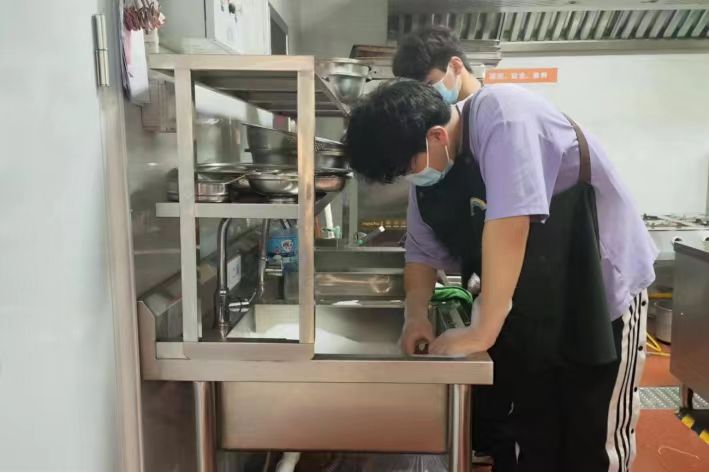 上午的娛樂活動結束后,因為養老院工作人員有外派工作,人手不夠,成員們便來到養老院一樓協助今天的午餐開展,一部份成員在餐廳為老人準備餐具,打飯,收拾餐盤,其余成員來到后廚幫助工作人員清潔餐盤。結束了忙碌的午餐環節,成員們和工作人員一起,開始打掃養老院的衛生,掃地、擦桌子、修剪綠植,不放過每一個角落。一番大掃除之后,養老院環境整潔如新。