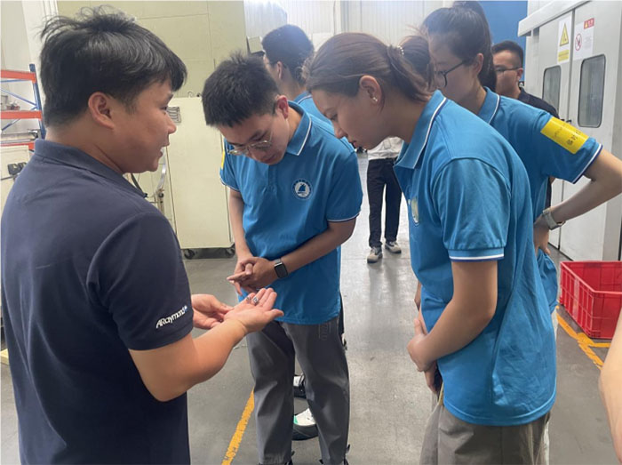 在車間參觀過程中,隊員們不僅了解了汽車緊固件的生產制造流程,還親身感受到了阿雷蒙在技術創新和自動化方面的成就。隊員們通過與一線技術人員的交流,進一步認識到現代制造業對高素質人才的需求以及技術能力在實際生產中的重要性。