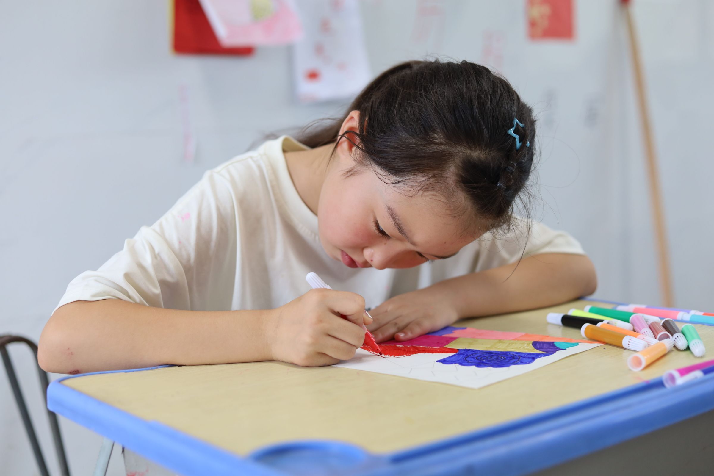圖為小孩子用線條勾勒出創意畫。多彩大學生網 隆瑩瑩 供圖