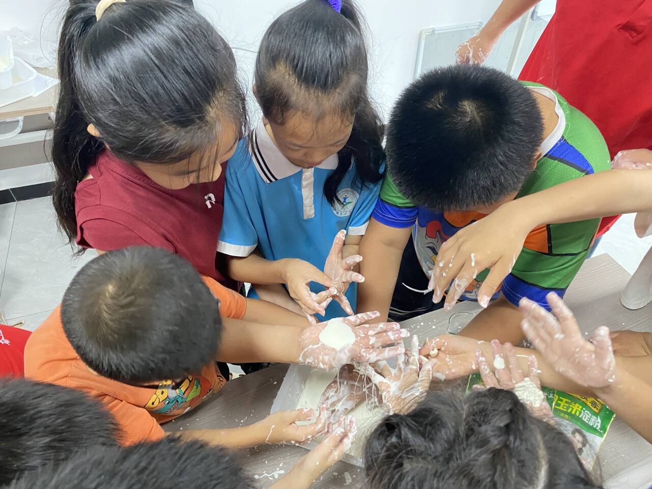2024年7月14日上午,香隅“微芒成陽”田園課堂開展了一節制作非牛頓流體的科學實驗課。本次課堂上,來自支教實踐團的成員們以玉米淀粉為材料,帶領小朋友們親手制作了非牛頓流體,讓孩子們在動手實踐中感受到了科學的魅力。