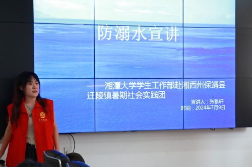 7月9日,為宣傳推廣防溺水安全知識,提高未成年人安全意識和自我保護意識,湘潭大學學生工作部赴湘西州保靖縣遷陵鎮暑期社會實踐團走進保靖縣遷陵鎮民瑞社區,開展未成年人保護、防溺水安全教育宣講活動。