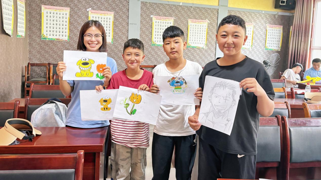 隨后,實踐團成員帶領社區青少年們進行了書法、繪畫、傳統剪紙、手工等一系列活動,旨在加強與青少年以及兒童的溝通,鼓勵他們勇敢表達自己的困難和問題。此外,隊員們通過了解不同年齡段青少年們的心理問題及困惑,進行針對性地開解和疏導,同時對于青少年的手工、繪畫作品給與肯定和支持,以此增強他們的動手能力和生活自信。