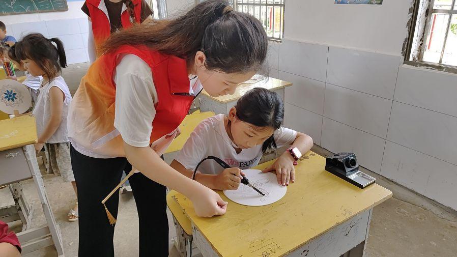 7月14日,“藝”心志愿者服務團深入邵陽縣利群村開展“芙蓉學子 鄉村振興”公益計劃,開設寶慶烙畫手工課堂,帶領鄉村學子感受家鄉“非遺”魅力。