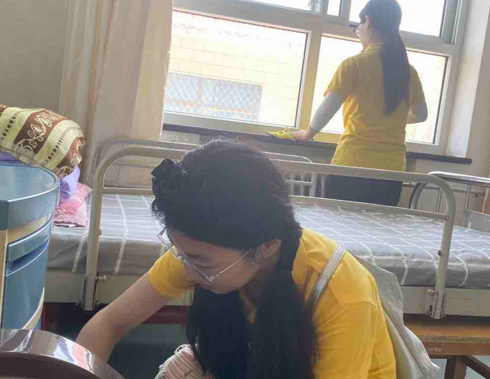 7月4日來到了惠豐養(yǎng)老苑開展志愿活動。 七月的炎熱天氣下,志愿者們秉持著“為老人服務(wù)”的宗旨,全身心投入志愿活動。他們不畏酷暑,穿梭于各個房間,黃色身影忙碌而堅定,以辛勤的勞動為老人們營造更加舒適的居住環(huán)境,每一處細(xì)節(jié)都彰顯著他們的“精益求精”。