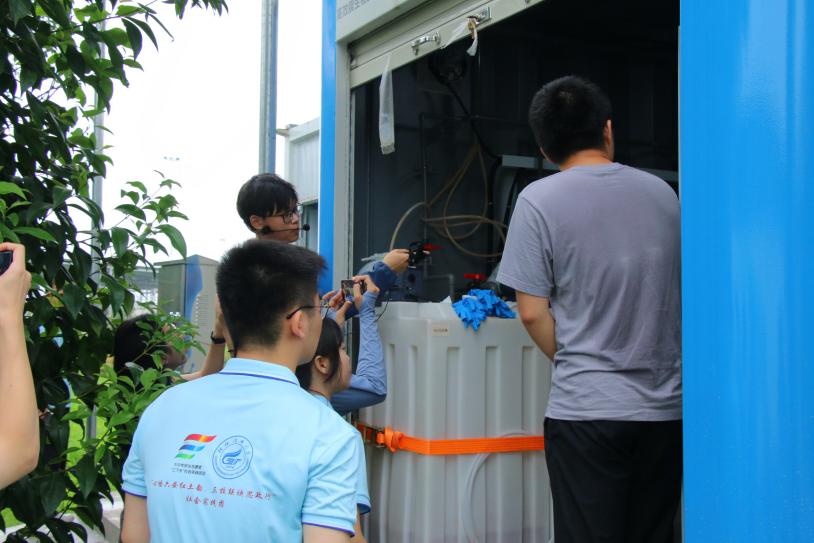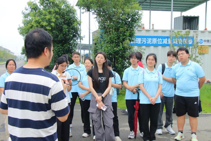 圖為講解員給實踐團成員講解臭氧調理污泥設備的操作流程(通訊員 鄧以諾 攝)