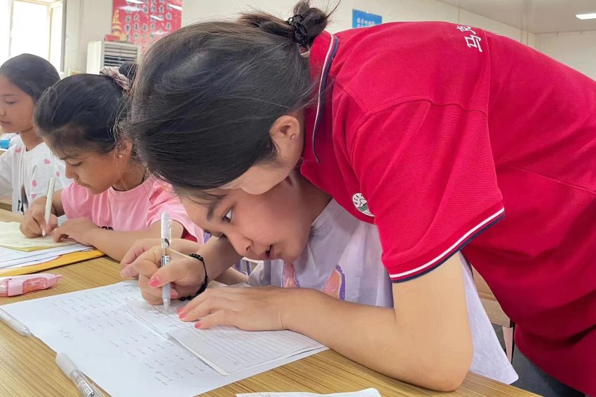 早讀結(jié)束后,實(shí)踐團(tuán)成員們針對(duì)不同學(xué)生的不同弱點(diǎn)進(jìn)行專項(xiàng)訓(xùn)練。以現(xiàn)場(chǎng)批閱的形式講解專項(xiàng)訓(xùn)練習(xí)題。并以鼓勵(lì)式教育輔導(dǎo)學(xué)生,在學(xué)習(xí)過程中培養(yǎng)學(xué)生獨(dú)立思考、勇于提出問題并解決的學(xué)習(xí)習(xí)慣。學(xué)生們?cè)趯?shí)踐團(tuán)成員的引導(dǎo)和幫助下,逐漸掌握了適合自己的學(xué)習(xí)方法,學(xué)會(huì)了獨(dú)立思考和解決問題,為未來的學(xué)習(xí)和生活打下了堅(jiān)實(shí)的基礎(chǔ)。