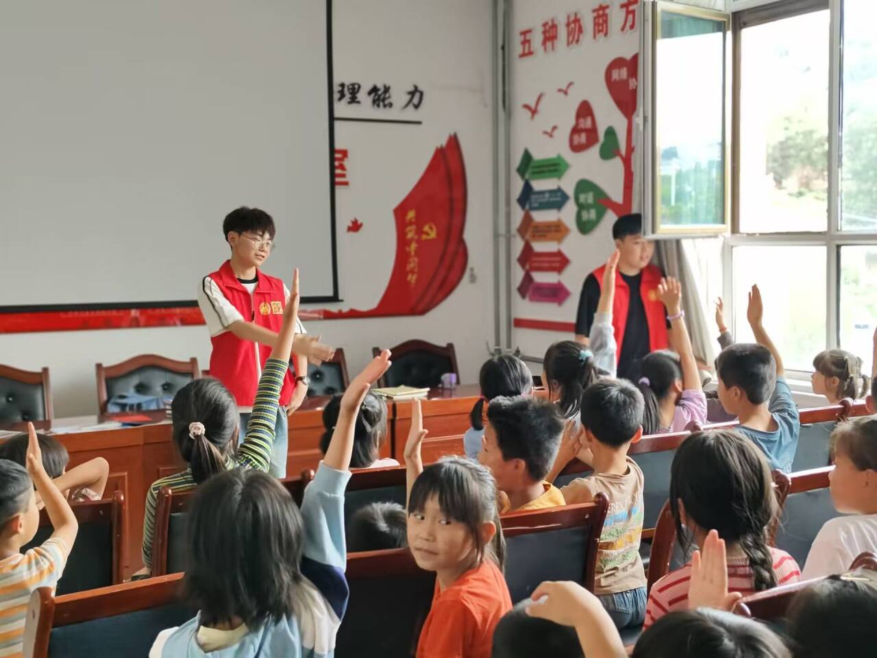 15日上午,服務隊成員精心策劃了以關愛少數民族兒童心理健康為主題的講座,并現場答疑解惑。講座內容緊貼孩子們日常生活,用詞樸實無華,孩子們踴躍參與,活動現場氛圍和諧融洽。孩子們在活動里有了認同感,有了歸屬感。