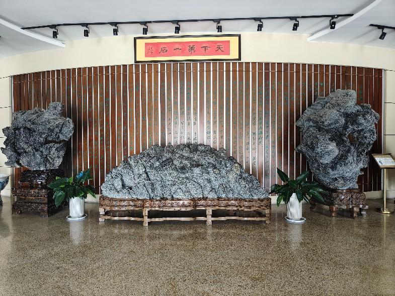 進入博物館,首先映入眼簾的是“天下第一石”牌匾及奇石。宋人曾贊美:“靈璧一石天下奇,聲如青銅色碧玉。秀潤四時嵐崗翠,寶落世間何巍巍。”其聲如青銅般清脆,色如碧玉般溫潤,堪稱天下奇石。