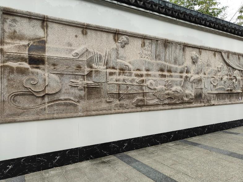 參觀完博物館內部,實踐團走出博物館,周遭景致如畫卷般徐徐展開,盡顯文化園獨特風采。園內有許多石刻,圖案繁復精細,線條流暢有力,為現代人描繪出古代文明的輝煌成就。
