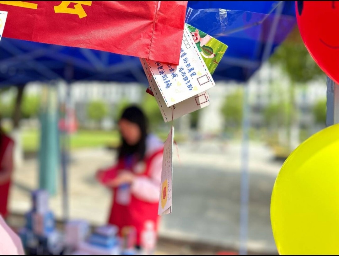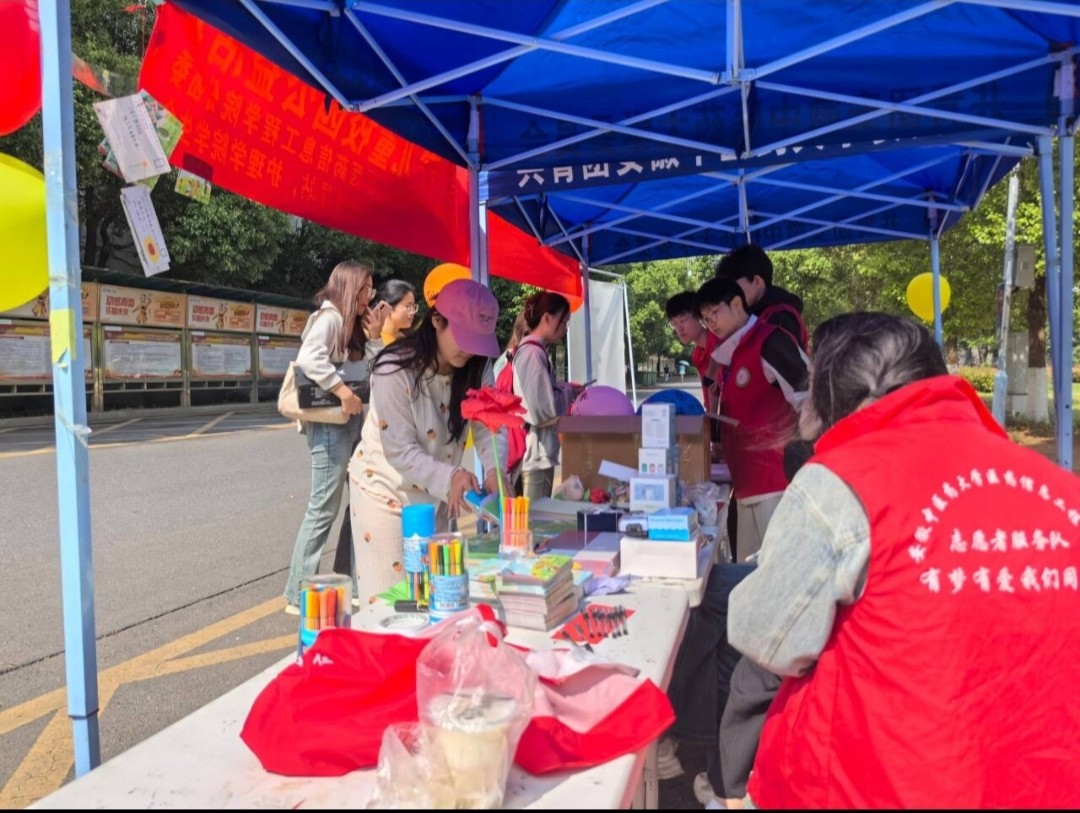 圖為醫藥信息工程學院志愿者搭建的活動擺臺圖片。