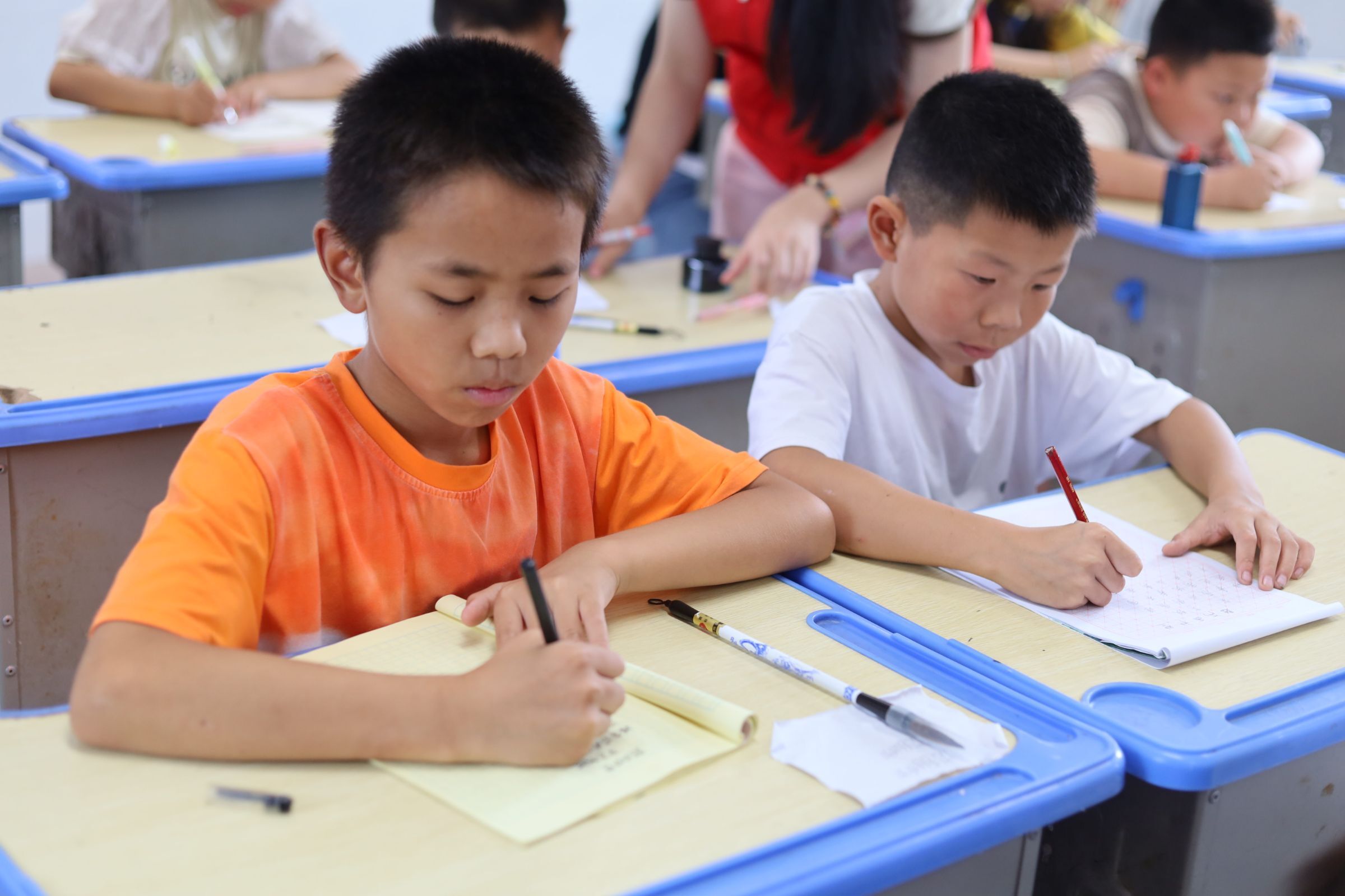圖為小朋友們在書法課上跟著老師練習(xí)《春江花月夜》的漢字。多彩大學(xué)生網(wǎng) 隆瑩瑩 供圖