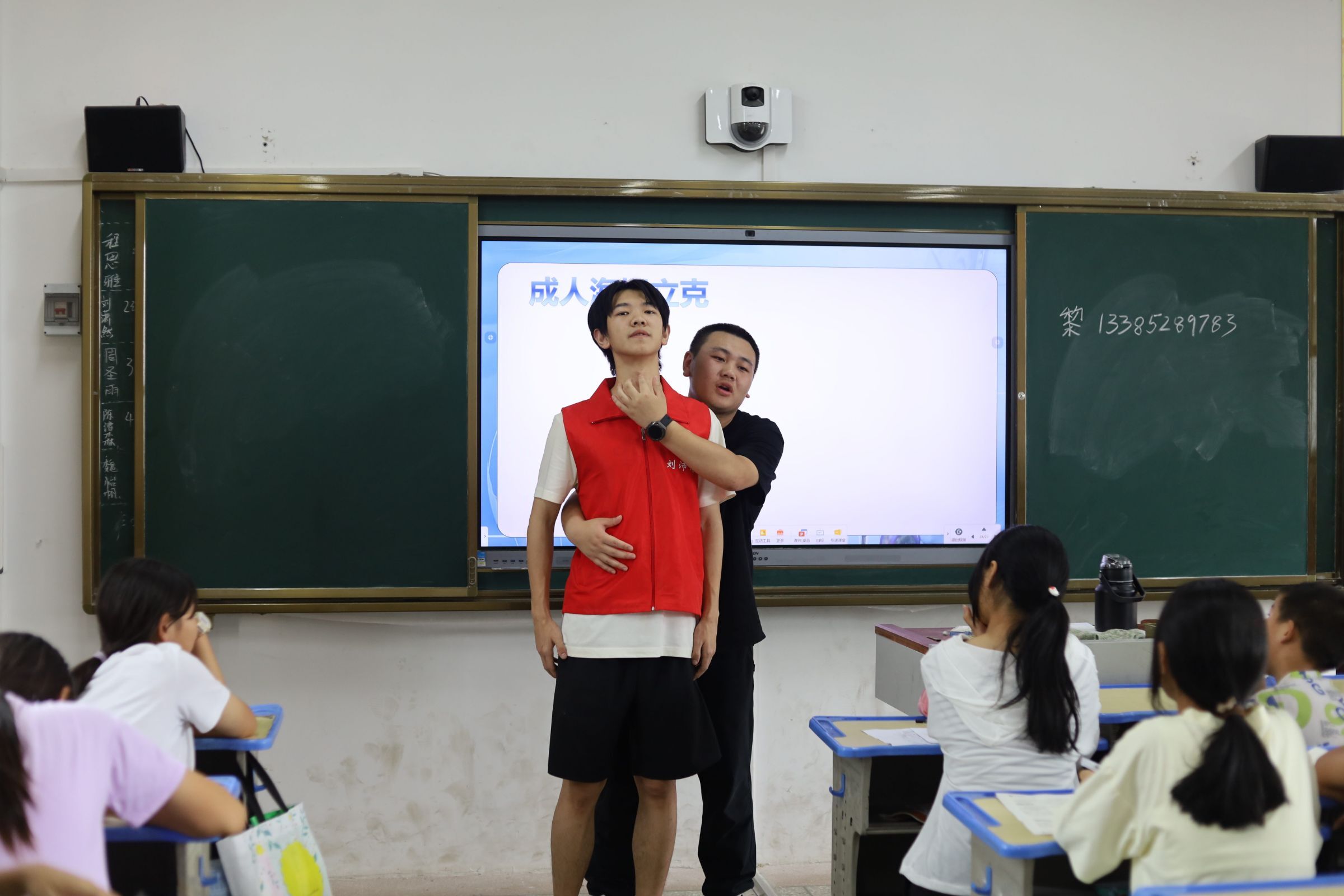 圖為志愿者老師在給小朋友們講解海姆立克急救方法。多彩大學(xué)生網(wǎng) 隆瑩瑩 供圖