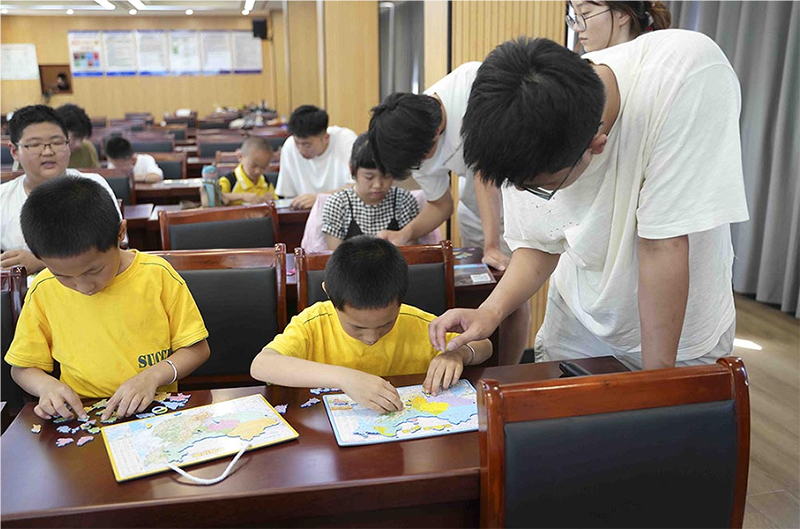 相識·破冰 活動伊始,志愿者們通過踩氣球、搶凳子等系列活動拉近和小朋友之間的距離,打破了初見時的拘謹。隨后圍繞“建國75周年”主題,志愿者們給同學們進行了詳細的省份介紹,并通過拼圖的形式,在學中玩、玩中學。省份是中國的基本行政單元,是構成國家的重要部分,讓小朋友們了解到自己是中國大家庭中的一員,有利于增強他們的國家認同感和民族自豪感,培養他們熱愛家鄉、熱愛祖國的情感。