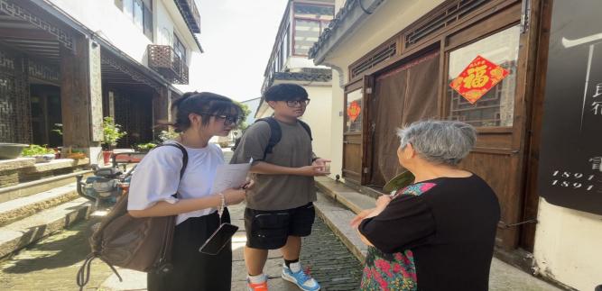 實踐團隊接著深入探訪了歷史悠久的陸巷古村,采訪了一位即將入駐該村的新晉民宿老板。這位滿懷熱情的創業者,雖面臨民宿尚未正式開張、處于籌備階段,卻對陸巷的自然風光與深厚文化底蘊充滿信心。采訪中,她分享了選址陸巷村的原因,主要是被當地基礎設施和公共服務、以及優美景色所吸引,表達了對鄉村振興戰略的積極響應與美好愿景。