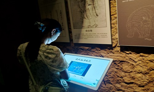 圖為團隊成員通過博物館觸摸一體機學習歷史文化