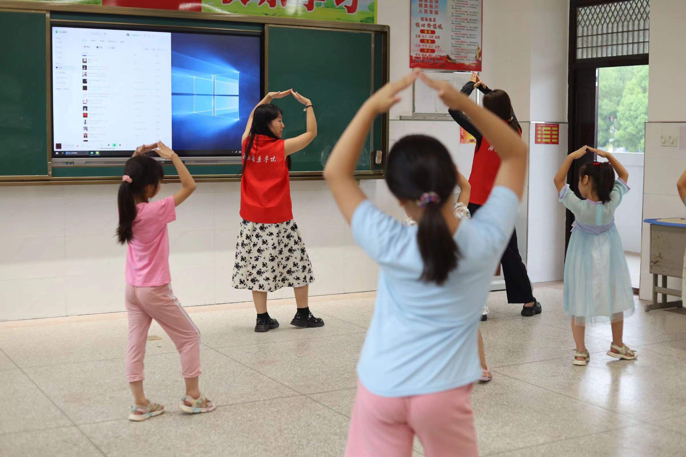 圖為舞蹈課志愿者和小朋友們練習(xí)舞蹈。多彩大學(xué)生網(wǎng)通訊員 隆瑩瑩 供圖
