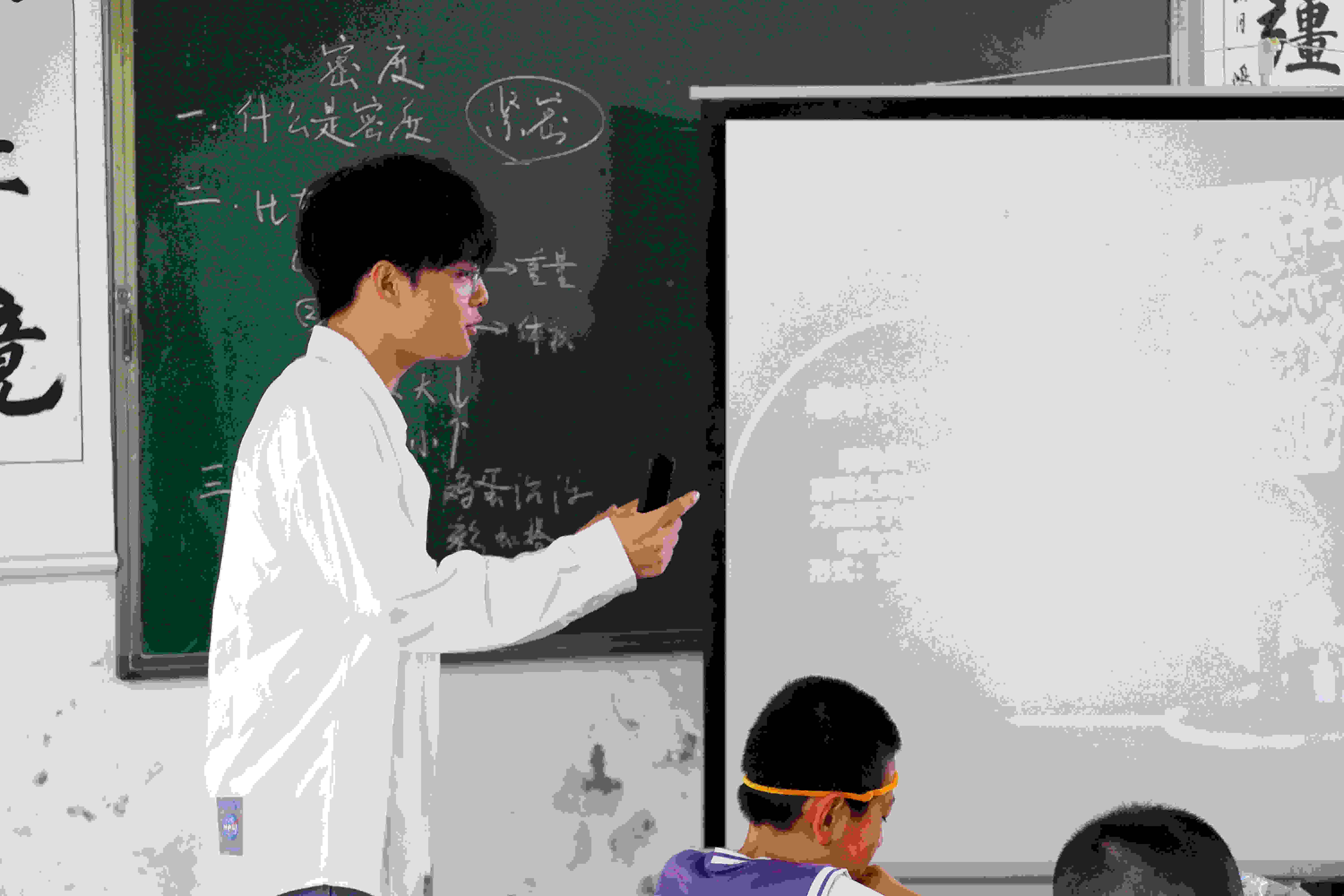 “大家知道鐵和棉花誰重嗎?”姜寓堯老師以一個巧妙的問題引出本節課的主題——神奇的密度。簡單介紹密度的物理定義后,姜老師講解了相關的物理學現象:神秘的死海、沉浮的雞蛋。在孩子們期盼的眼神中,老師帶領孩子們親手制作了自己的“死海”和“彩虹塔”。“你們知道蜂蜜、水和酒精誰的密度大嗎?”“我知道!蜂蜜的密度最大在最下面,水在中間,酒精的密度最小在最上面!”孩子們爭先恐后地舉起小手,展現出極高的參與熱情和思考積極性。課堂的每一個角落都充盈著探索的喜悅和成長的能量,見證了知識的共享與智慧的共生。