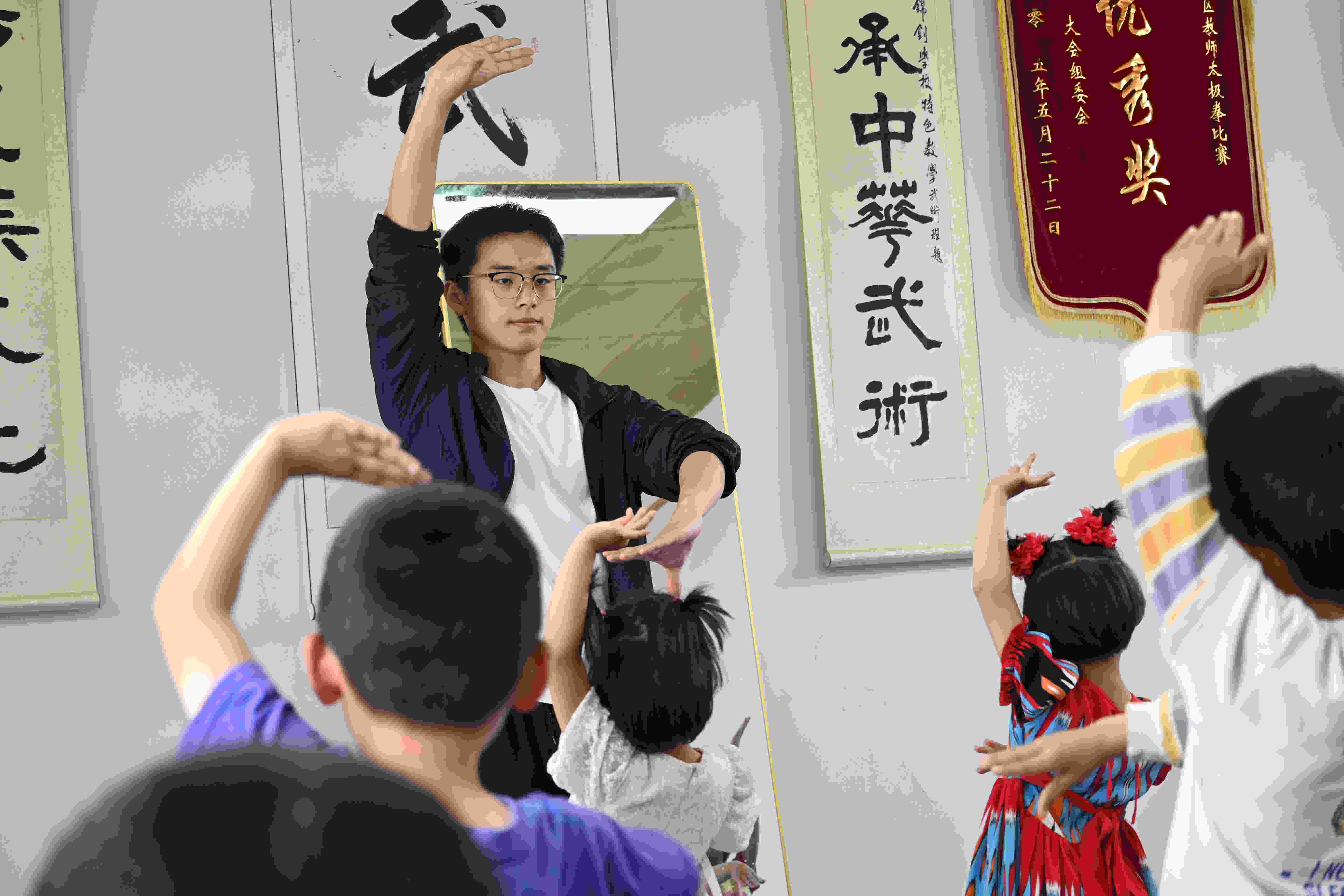 劉婷老師帶來扭扭棒制作的課程,帶領孩子們繪制自己眼中的世界;“音樂是沒有定義的。”李墨軒老師是音樂鑒賞課上的領航者,引領學生們穿梭于節奏與韻律的無限寬廣;“吳楚東南坼,乾坤日夜浮。”姜集成老師為同學們講解《登岳陽樓》,帶領學生們領略唐詩輝映千古的藝術魅力;侯鳴一老師則以舞步為筆,身體力行地詮釋著另一種靈動的藝術語言。一天課程安排的最后,於華溢老師帶領學生們認識七巧板,讓同學們發揮自己的想象力和創造力,用七巧板描繪出自己想象中“美麗的春天”的圖畫。