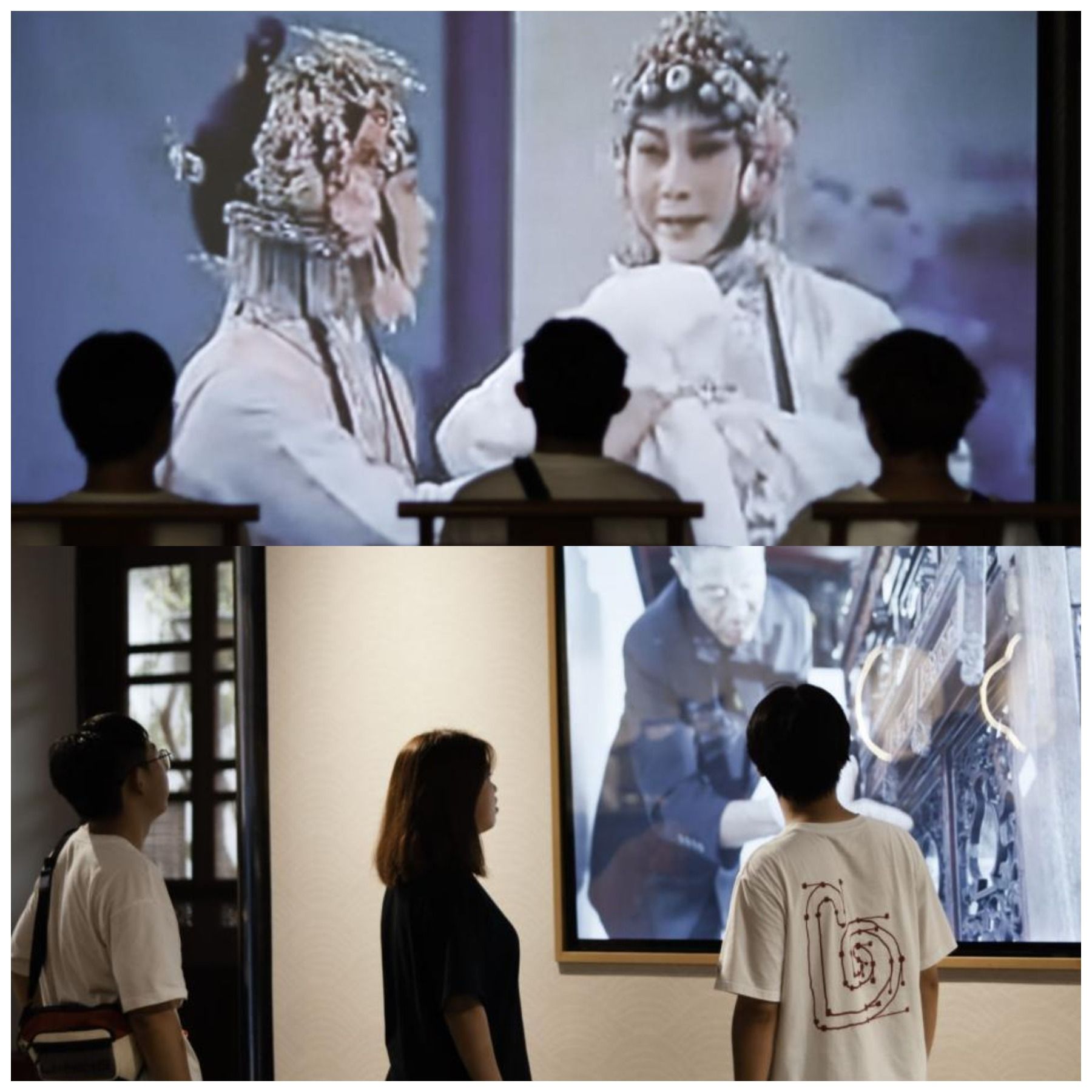 實踐隊員觀看昆曲表演視頻和鎮館之寶“寶和堂”堂名燈擔修復視頻