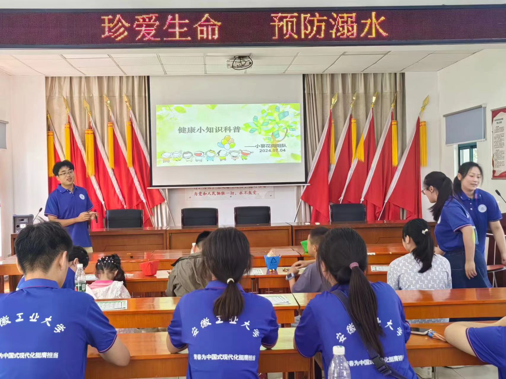 7月11日,在“三下鄉(xiāng)”活動的倡導下,安徽工業(yè)大學外國語學院小葵花向陽隊的學生不僅致力于推動農(nóng)村地區(qū)的全面發(fā)展,更將預(yù)防溺水教育帶到了濮塘村的孩子們面前。他們的行為向大家證明了廣大青年正以實際行動踐行著為民族復(fù)興而奮斗的初心,他們將以青春和汗水,在各自的崗位上為國家的發(fā)展貢獻力量,共同譜寫新時代的青春之歌。