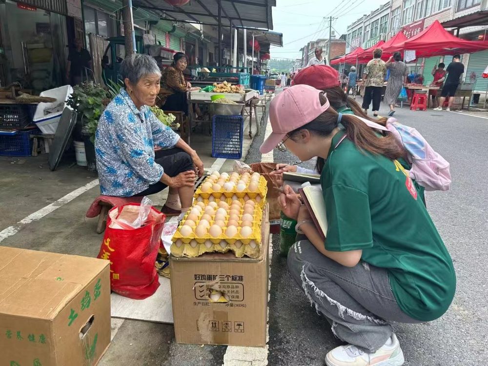 清晨,調研團部分成員組成“趕集小分隊”,率先前往陸橋農貿市場參加早市趕集,積極融入當地活動。在集市上,調研團成員與商戶、居民們進行熱情交流,詳細詢問了目前蔬菜、肉類等商品的售賣情況和價格情況。通過具體交流和多方面采訪,調研團成員了解到陸橋社區在每月農歷“一、四、六、九”逢集,居民們通常于趕集日當天日出時開始趕集,秋冬季一般晚于春夏季,集市主要售賣當季果蔬、肉類、調味品及早點等。接著,調研團成員分為三個小組,進入陸橋社區分發調查問卷,深入了解當地居民的日常生活、傳統習俗以及社情民意等。調研過程中,調研團成員積極融入陸橋社區居民中,與居民們詳細交流,詳細了解陸橋居民們的實際情況,效果良好。