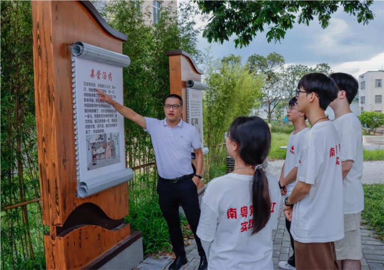 會后,吳挺帶領南粵黨旗紅實踐隊參觀了蘇茅角村,并為團隊成員講解了傳統優秀文化故事。一直忙到夜晚,吳挺還看望了在廉江河唇共同開展社會實踐的千網筑夢團隊,并鼓勵團隊要利用好“數智”原創產品功能,為廉江新質生產力發展賦能。