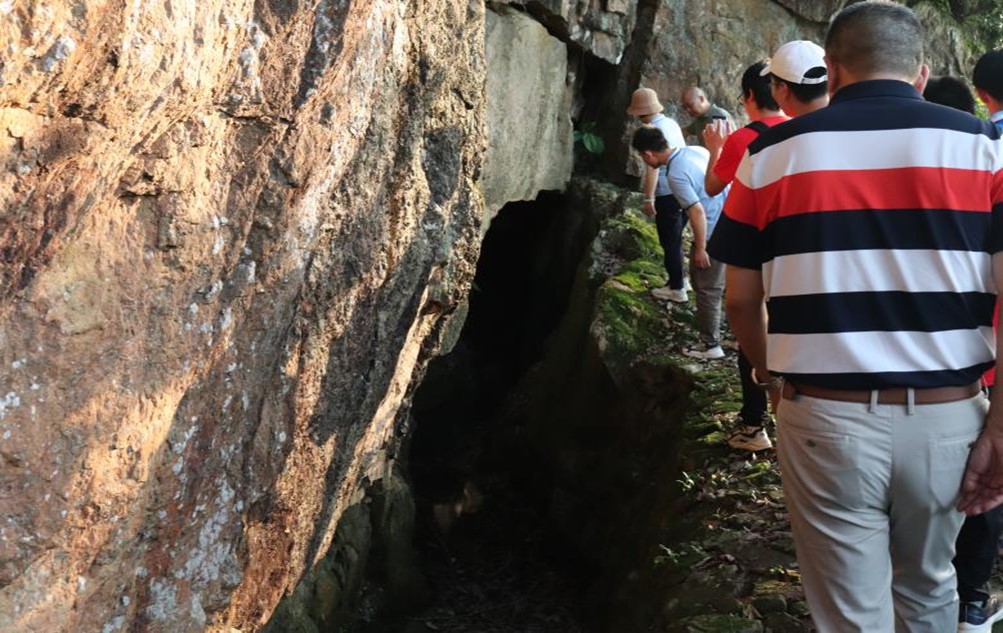 實踐團成員沿著蜿蜒曲折的水渠,仔細觀察著每一處細節。龍腰渠,這條全長5000余米的明渠,穿越龍腰山脊堅硬的花崗巖,將大石溪水引入霍童溪右岸,灌溉著石橋洋的千余畝良田。而琵琶洞渠系,因流水聲似琵琶彈奏而得名,后因洞內蝙蝠聚集,又稱“蝙蝠洞”。琵琶洞渠系總長9000余米,由明渠與7段隧洞連接而成。隧洞總長700多米,采用“火燒水激鑿石工法”開鑿,現存的隧洞還有5段,總長約80米,寬約1米,最高處2.5米。則以其獨特的隧洞設計,將溪水引入東北過溪坂的百頃田地,形成了完備的灌溉網絡,無不彰顯著古人的智慧與勤勞。