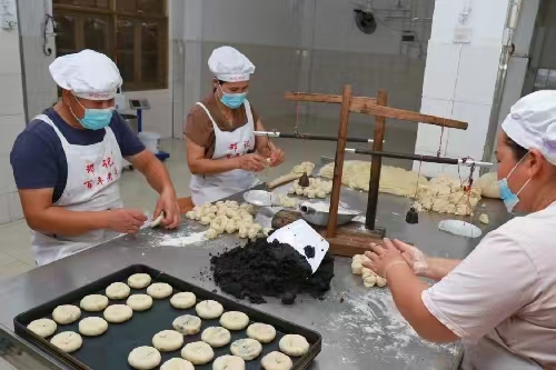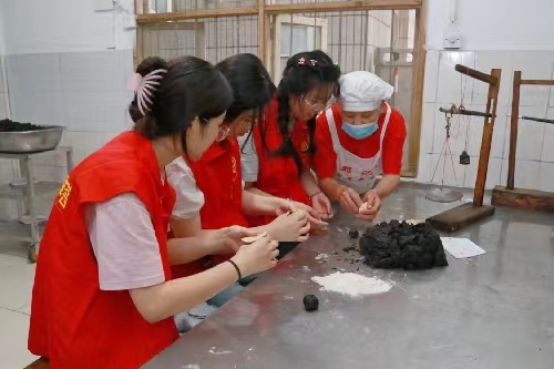 金黃酥脆的餅皮,清甜不膩的豆沙,一股濃郁的香味帶著濃厚的“鄉”味從保靖縣的一條小巷子里飄出......7月6日,為調研非遺美食保靖洗沙月餅的傳承現狀與發展路徑,湘潭大學學生工作部赴湘西州保靖縣遷陵鎮暑期社會實踐團走進鄧記月餅廠,拜訪鄧記洗沙月餅第三代傳人彭曉玉,并親身體驗了洗沙月餅的制作過程,探尋其獨特的匠心與技藝,感受“舌尖上的非遺”。