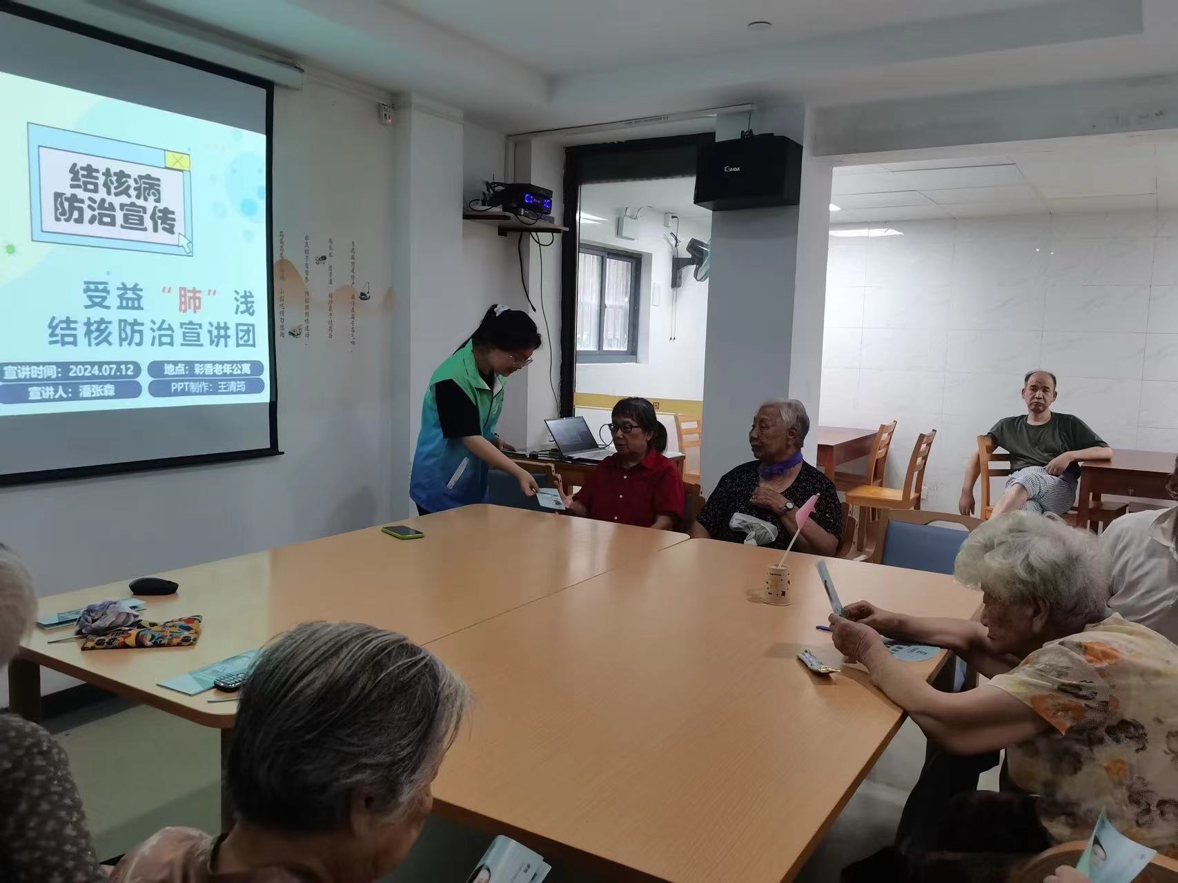 為積極響應國家百千萬志愿者結核病防治知識傳播活動,提高居民對肺結核的認識,增強自我保護意識,促進全民健康水平提升,2024年7月12日受益“肺”淺 結核防治宣講活團在江蘇省蘇州市姑蘇區香彩老年公寓開展2024年暑期第3次肺結核防治宣講活動。此次宣講活動由公寓中老年居民參加,并得到了青年志愿者協會和香彩老年公寓管理負責處的大力支持。