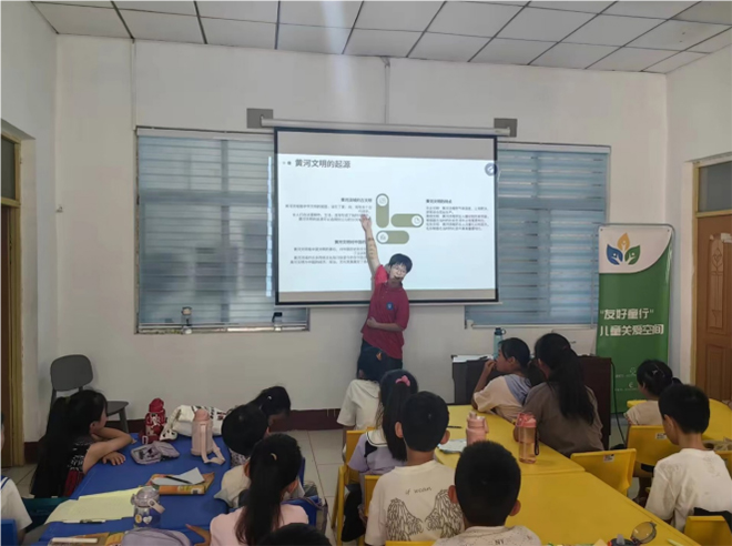 黃河作為中國的母親河,在中國人尤其是山東人心中有著舉足輕重的地位。九曲黃河萬里沙,浪淘風簸自天涯。關(guān)于黃河的古詩不計其數(shù)。今天,志愿者李澤鈺給孩子們帶來一節(jié)黃河知識的課程,李老師給孩子們介紹了黃河的起源以及黃河流經(jīng)的地區(qū)。然后,李老師又給孩子們放了一段關(guān)于黃河的視頻,大家都被氣勢磅礴的黃河所震撼。