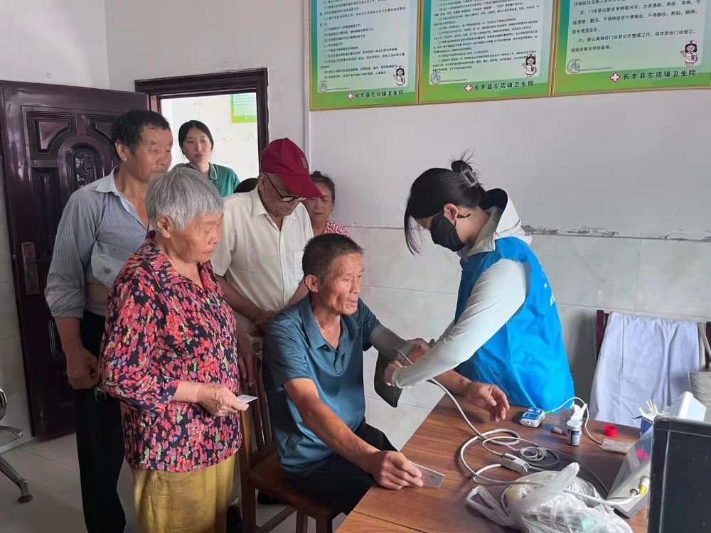 調研團成員首先來到陸橋社區衛生室,恰逢陸橋社區村民進行定期的健康體檢活動。通過與在場村民和衛生院工作人員的親切交談,團隊深入了解了衛生室的硬件設施配備情況、醫療服務的質量水平以及居民健康管理的實施成效。衛生院負責人介紹,陸橋社區衛生院分為藥房和治療室兩部分,近年來,在積極響應國家政策的號召下,衛生院持續優化服務流程,提升醫療服務能力,致力于為居民提供了更加便捷、優質的醫療保障。