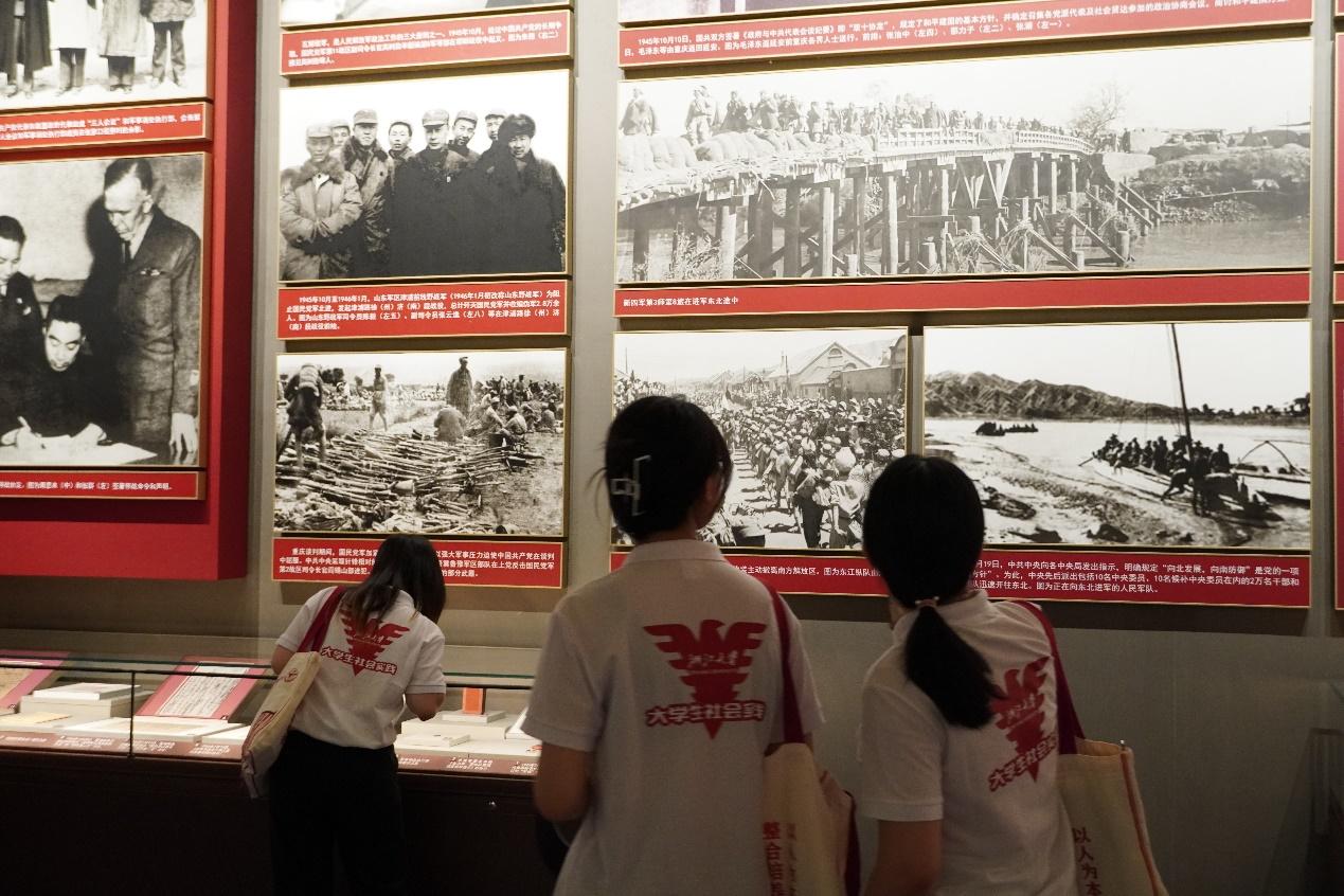 在場(chǎng)館講解員的帶領(lǐng)下,實(shí)踐團(tuán)成員參觀了“‘不忘初心,牢記使命’中國(guó)共產(chǎn)黨歷史展覽”。展覽按照“站起來(lái)、富起來(lái)、強(qiáng)起來(lái)”的歷史脈絡(luò)規(guī)劃設(shè)計(jì),一共分為4個(gè)部分,分別是 “建立中國(guó)共產(chǎn)黨,奪取新民主主義革命偉大勝利”、 “成立中華人民共和國(guó),進(jìn)行社會(huì)主義革命和建設(shè)”、“實(shí)行改革開(kāi)放,開(kāi)創(chuàng)和發(fā)展中國(guó)特色社會(huì)主義”、“推進(jìn)中國(guó)特色社會(huì)主義進(jìn)入新時(shí)代,全面建成小康社會(huì),開(kāi)啟全面建設(shè)社會(huì)主義現(xiàn)代化國(guó)家新征程”。