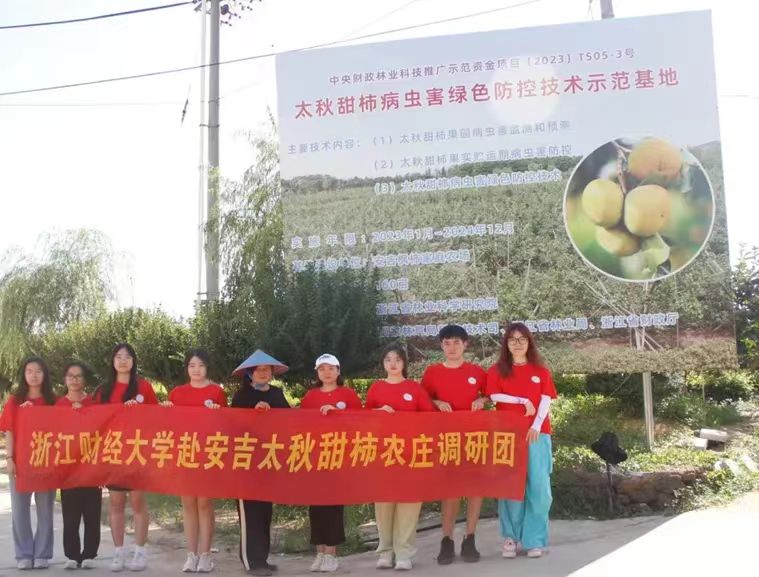 7月8日,浙江財經大學實踐團深入安吉縣,探訪了太秋甜柿農莊,與農莊主人呂阿姨進行了深入的交流。呂阿姨堅持綠色種植,用心培育的甜柿不僅品質上乘,還帶動了當地村民的增收致富,為鄉村振興樹立了典范。